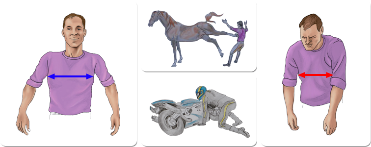 JEŚLI ŻEBRO W CZĘŚCI BOCZNEJ JEST ZŁAMANE W DWÓCH RÓŻNYCH MIEJSCACH, MÓWIMY O TZW. ZŁAMANIU OKIENKOWYM, KTÓRE MOŻE POWODOWAĆ PATOLOGICZNĄ RUCHOMOŚĆ KLATKI PIERSIOWEJ I CIĘŻKIE ZABURZENIA ODDYCHANIA.